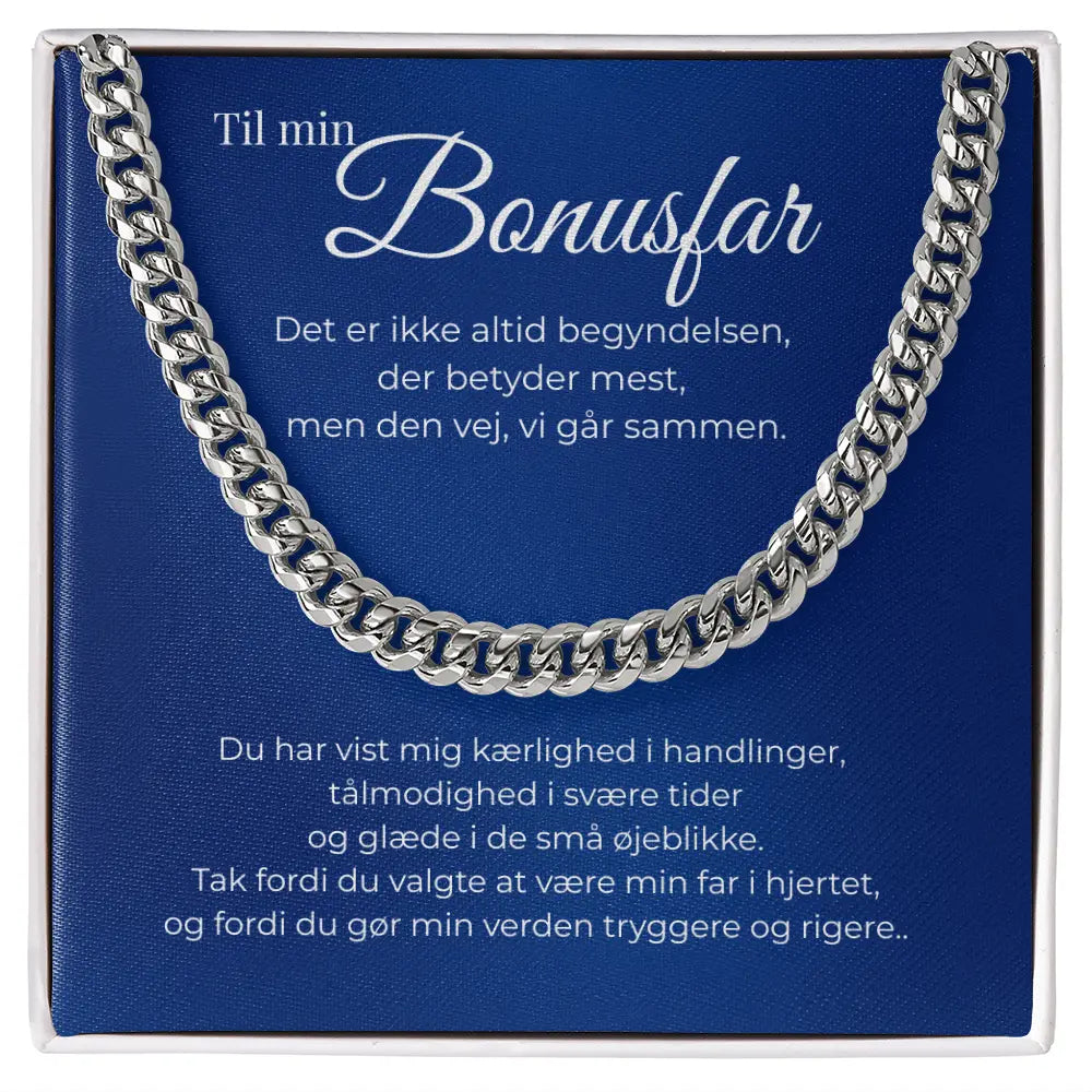 At finde den rette gave til en bonusfar handler ikke om at finde noget stort, men noget, der rører hjertet. Denne Cuban Link halskæde er skabt til at vise, hvor meget han betyder – et symbol på styrke, respekt og den kærlighed, der vokser gennem valg, ikke blot blod.