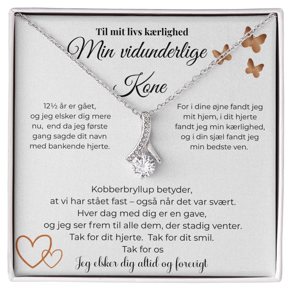 Kobberbrylluppet er ikke bare en dato i kalenderen. Det er et stille bevis på alt det, I har holdt fast i, også når livet krævede mere end ord. Når du vælger denne gave til din kone, vælger du at sætte følelse på de 12½ år, der er gået, og på alle dem, der stadig venter.